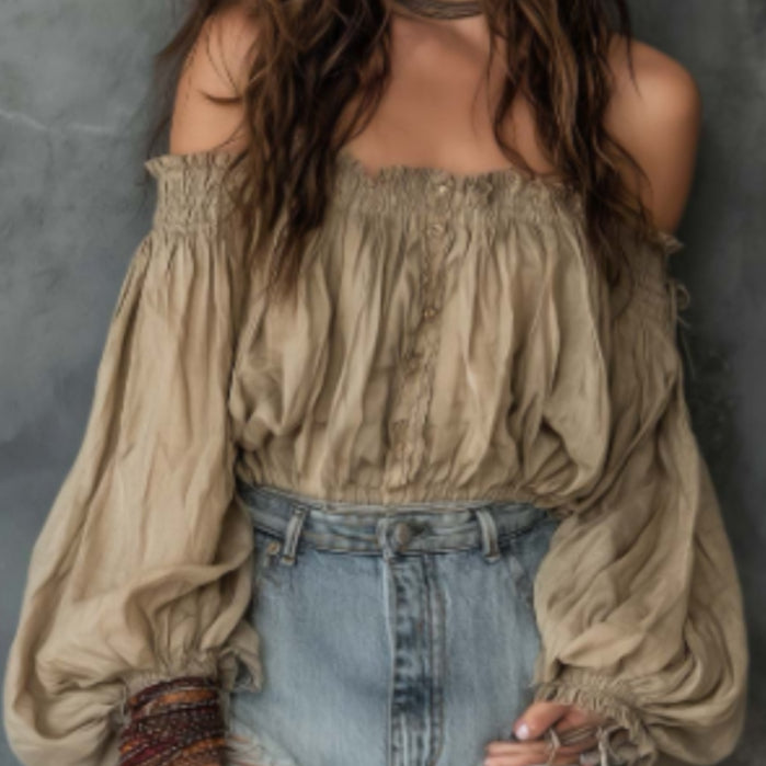 Cute off the shoulder polyester blouse with cinched